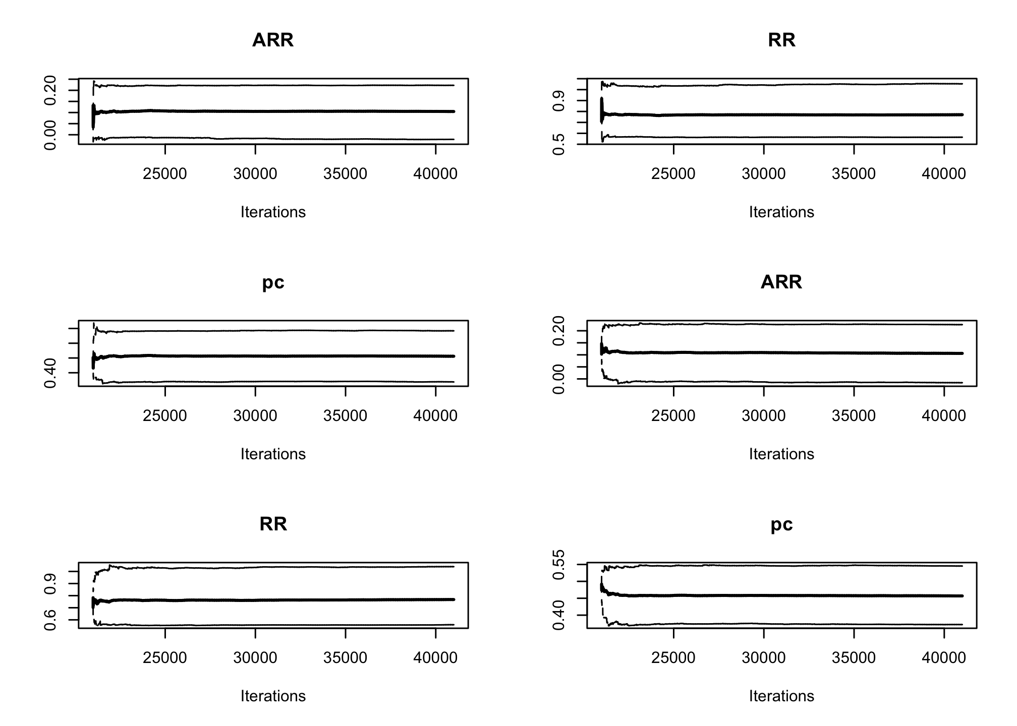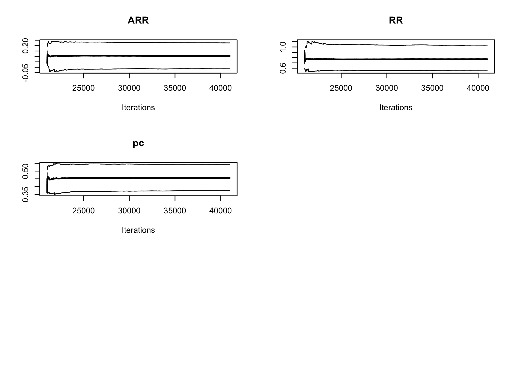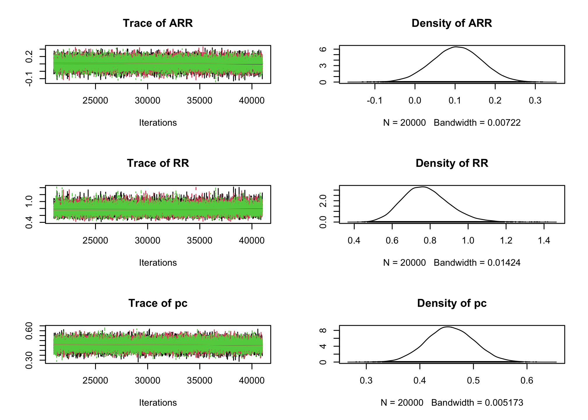 effectiveSize()Rfunction).effectiveSize(res_goligher_burnt_pop)## ARR RR pc ## 15158.59 16188.20 16209.06plot(res_goligher_burnt_pop)